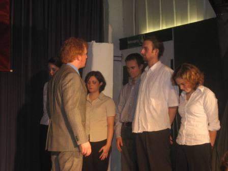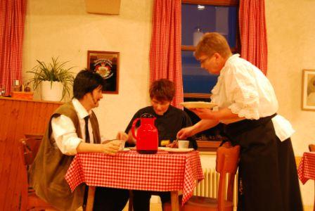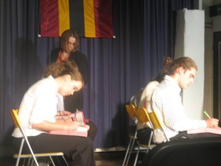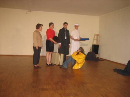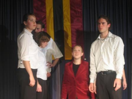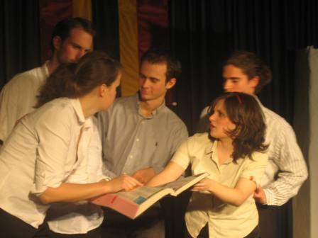 Hier spielte die Theatergruppe 03 prägnante Szenen aus Ernst Jandl Konversationsstück -Die Humanisten- .