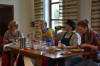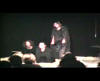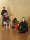 Mit wenigen Mitteln verkörpern die fünf Schauspieler den Konflikt untereinander. Die skurrilen Wortspielereinen löste vielfach Gelächter aus, doch der ernsthafte Tenor blieb erhalten. Eine beeindruckende Vorstellung, die die Gäste mit sehr viel Beifall belohnten. (Dargmar Kolb) WN Die Gruppe 03. ausWarendorf spielte Szenen aus Ernst Jandl. " Die Humanisten". Die absurde Verbalhornung der Konservativen zwischen sogenannten Bildungsbürgern, Künstlern und Sittenwächter setzte den Abend die wortakrobatische Krone auf. Das Publikum honorierte diegelungene Vorstellung mit viel Lachen und Beifall. (Christian Havelt) MZ |