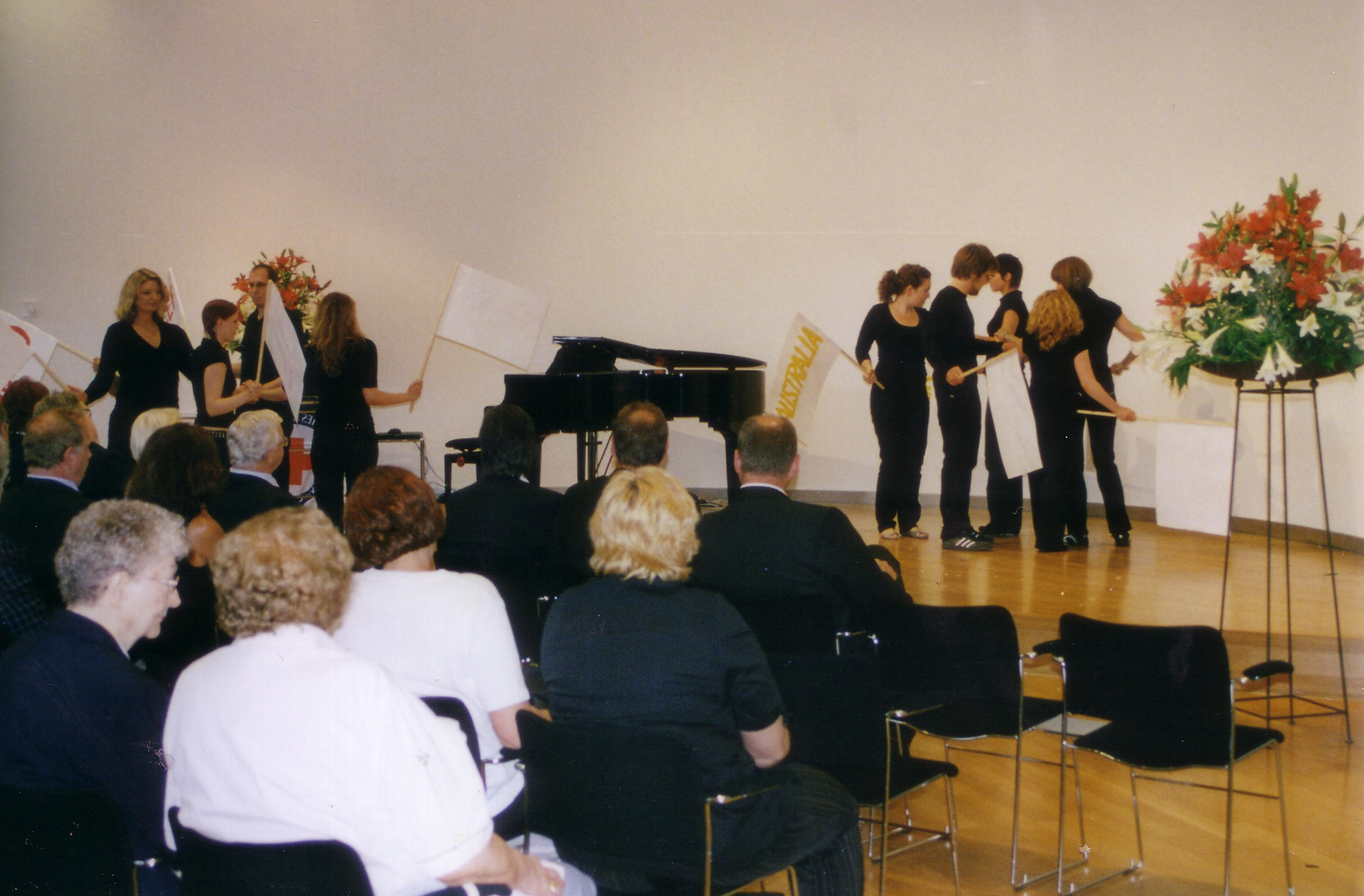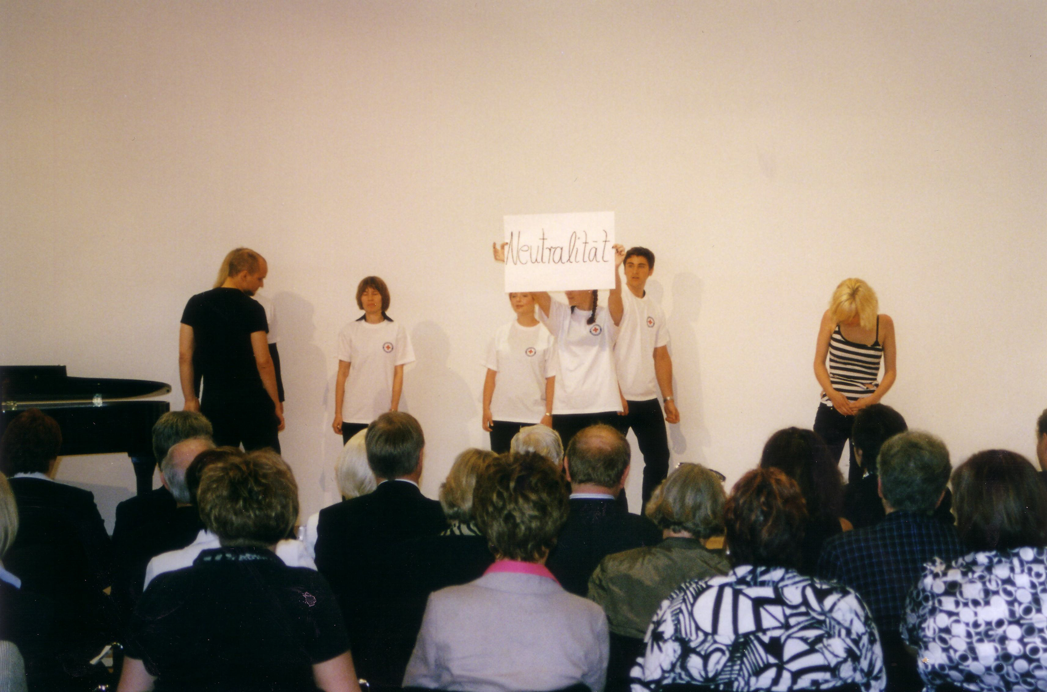 100 Jähriges bestehen der DRK-Schwesternschaft Westfalen. Ein Theaterprojekt mit einer Klasse aus der Kranken- und Kinderkrankenpflegeschule am UKM zu dem Thema: Die sieben Grundsätze des DRK: Menschlichkeit, Unparteilichkeit, Neutralität, Unabhängigkeit, Freiwilligkeit Einheit, Universalität