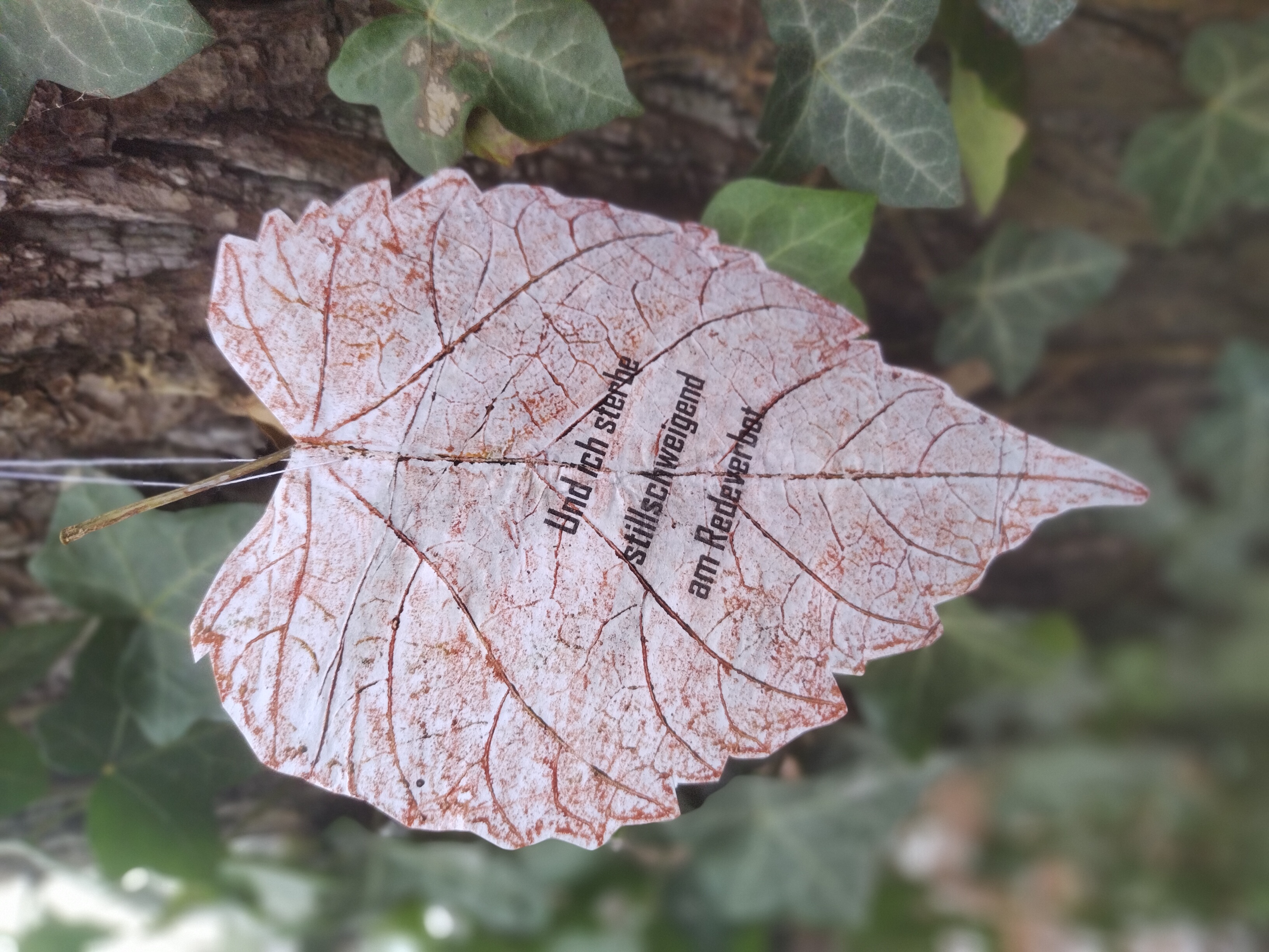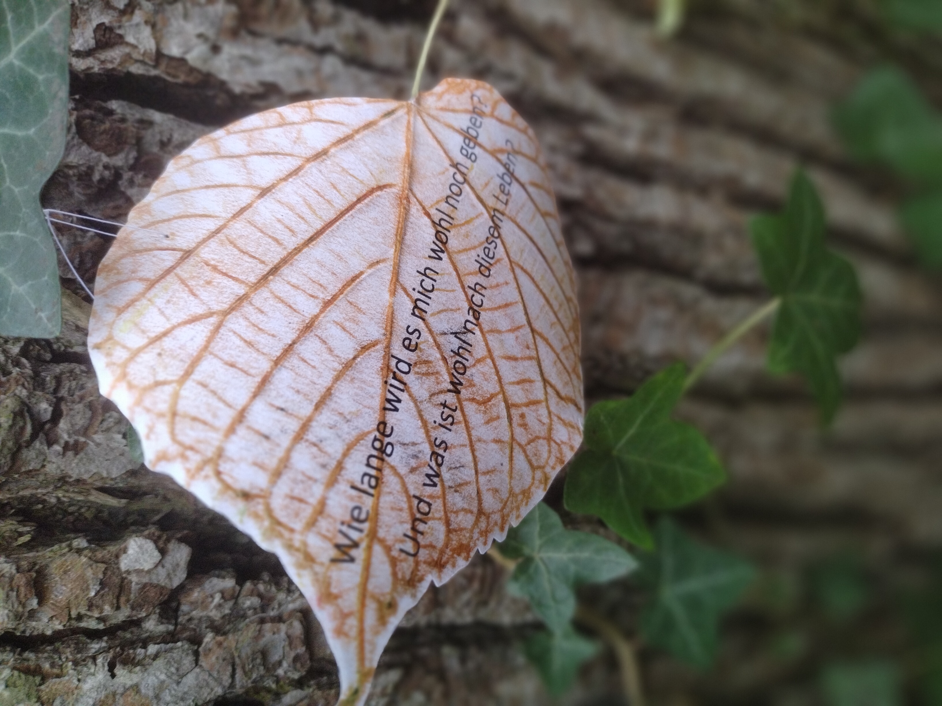 Text am Baum hängen