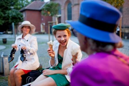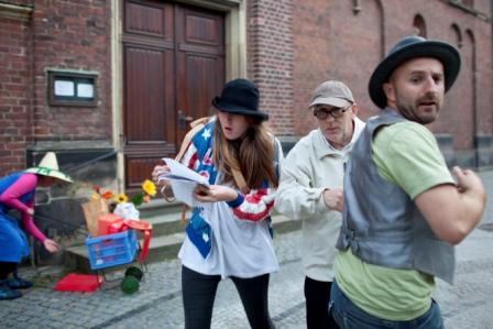 Bei ungemütlichen Temperaturen wurden nach Ideen der Akteure ein szenischer Reigen montiert, der einem tagesablauf folgt, ihn teils verschrägt, teils ironisch bricht - und so den Blick für das schärft, was sonst im Alltag stumm an uns vorüber schaut.