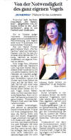 ... Brutalität, Ziellosigkeit und menschliche Leere bestimmen das Leben der Figuren in Theresia Walsers gleichnamigen Stück. ..... Die Frage nach der Ähnlichkeit mit sich selbst hat das Stück für die Schauspielgruppe attraktiv gemacht.... Trotz aller Grausamkeit gelingt es ihnen aber auch, den makaberen Witz des Stückes lebendig werden zu lassen. Schwarzer Humor sickert in die Reihen und bleibt als Lachen im Halse stecken.... MZ: 09.11.08 Christian Kiel
