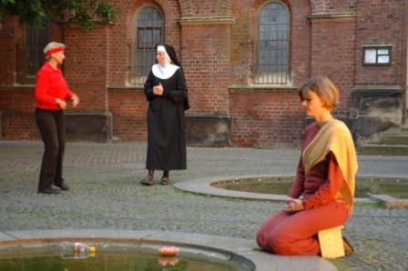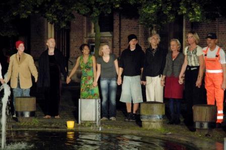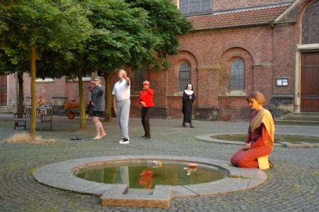 Theater Mimesis Ein Tag, Ein Platz und das leben Eine Assoziation zu den skulpur projekten münster07 | | Der Aegiiikirchplatz Münster wurde zu einer Bühne, eine Kulisse zwischen Kirche und Gerichtsgebäude, eingetaucht im Zusammenspiel zwischen natürlichem Licht und Kunstleicht. Ein Abenteuer für das ganze Ensemble. Es spielten: Sylvia Bodde-Mürrmann, Teresa Brugues, Sophia Demming, Johannes Drees; Nicole Gawollek, Anita Huisjes, Vera Hunter, Gaby Jasper, Hartwig Kassartz, Ulli Kleinert, Wibke Klöpfer, Karl-Heinz Laschke, Imke Loeper, Luisa Louwen, Albert Middel, Till Nonhoff, Gilla Pitz, Lisa Poggel, Martina Poggel, Sandra Rieksmeier, Annette Roth, Gabie Schönstädt, Ulla Struck-Gerlach, Maj-Britt Schröder, Felix Schwarz, Brigitte Stork, Agnes Stürwald, Fehmi Taneri Wolfgang Werminghausen,