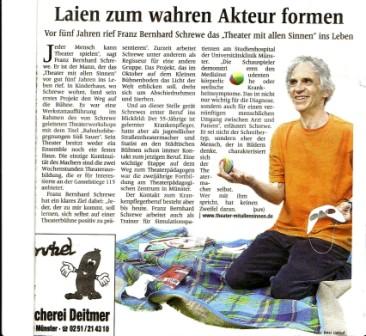 ![]() Laien zum waren Akteur formen. Vor fünf Jahren rief Franz Bernhard Schrewe das "Theater-mitallensinnen" ins Leben WN 2010 |