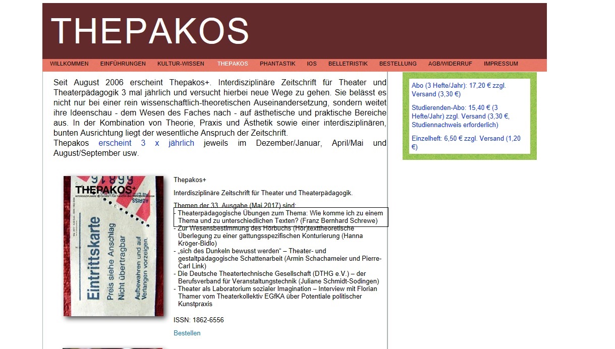 ![]() Veröffentlicht in der Theaterpädagogischen Zeitschrift Thepakos Oldib Verlag. |